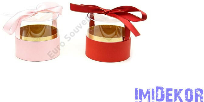 Áttetszű akril fedelű papírdoboz henger 13x12 cm - Piros