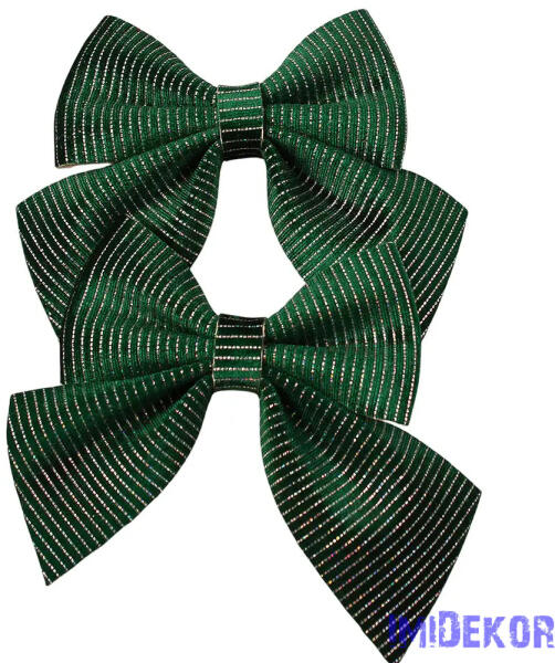 Csíkos bársony masni készlet, 12 x 13cm, 2db. - Sötétzöld