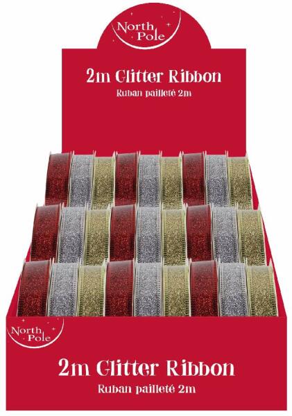Eurowrap selyemszalag, csillogó, arany, ezüst, piros 2m karácsonyi (5) (X-34322-RC)