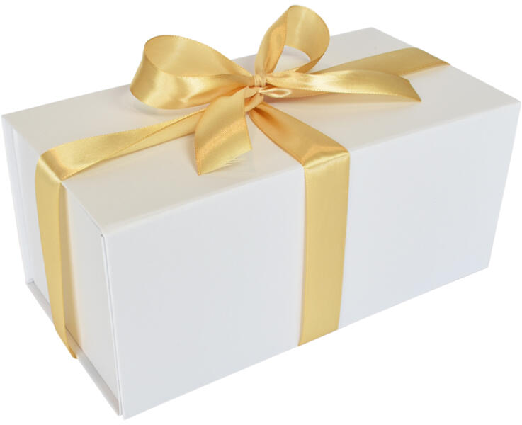 Exkluzív megjelenésű és prémium minőségű  ajándékdoboz, mely elsősorban kisebb méretű italok (pl. whisky) vagy karácsonyi gömbök díszdobozaként funkcionál. Ajándékdoboz jellemzői:Belső mérete: 22x11x10 cm Magas minőségű, karton anyagból készült doboz (1200 g/m2). Különleges mágneses záródás az ajándékdoboz elülső lapjába rejtve. Az egyszerű összeszerelést és pontos összeillesztés a beépített tépőzárak biztosítják. Elegáns matt fehér színű, kívül-belül. Környezettudatos anyaghasználat: 100%25-ban újrahasznosított anyagból készült és 100%25-ban újrahasznosítható. Ajándékdoboz felhasználása:Exkluzív ajándékcsomagok készítéséhez. Kb. két darabos ajándékcsomagok készítéséhez, például karácsonyi gömbök küldéséhez, kiváló választás. Prémium termékek ajándékcsomagolásához. Elsősorban kisebb méretű italok, mint whisky díszcsomagolásaként ajánljuk. Kemény anyaga és térkitöltő használata esetén biztosítja, hogy a termékek biztonságban és tökéletes külsővel érkezzenek meg a vásárlókhoz. ÉlménycsomagolásA mágneses ajándékdoboz igazi élményt nyújt a csomagolás során is. Ajándékdoboz összeszerelése Lapra szerelt állapotban szállítjuk, aminek köszönhetően kisebb a szállítási díj mértéke. Lapra szerelt állapotban kis helyen is elférnek a prémium minőségű dobozok, így azokat elég csak közvetlenül a felhasználás előtt összeszerelni. Az ajándékdoboz néhány mozdulattal összeszerelhető: kihajtogatjuk az két hosszanti oldallapot a selyem szalagok segítségével és az ezek belső oldal található tépőzárakat összenyomjuk.   A mágneses záraknak köszönhetően könnyen összecsukható az ajándékdoboz, melyet aztán még masnival is díszíthetünk. A tépőzáraknak köszönhetően a használatot követően ismét összehajtható a doboz. Egyedi díszdobozA mágneses ajándékdobozok egyik kiemelkedő tulajdonsága, hogy számos módon személyre szabhatóak, így támogatva a felhasználási célt.  A külső megjelenésében hangsúlyt kaphatnak a szalagok, masnik, ugyanakkor szerepelhet rajta céges logó, köszöntő szöveg és más branding elemek is.  Ez utóbbiak elkészítésére számos lehetőség köztük a fóliázás, szitanyomás és nyomtatások is a vásárlók rendelkezésére állnak. Amennyiben személyre szabott díszdobozok felől érdeklődik, kérjük keresse ügyfélszolgálatunkat!A díszdobozok belső felülete és tere is megannyi lehetőséget nyújt elképzeléseink megvalósítására.  Az ajándékdoboz belső fedele kiváló kommunikációs lehetőség üzenetek elhelyezésére,  melyre a fenti megoldások szintén alkalmazhatóak. Emellett pedig a belső kialakítást is termékre szabottan lehet elkészíteni.  Ez utóbbihoz a legegyszerűbb és egyik legmutatósabb megoldást a kreppelt térkitöltő papír jelenti, ami rengeteg színvariációban elérhető és könnyen alkalmazható különféle ajándékcsomagok készítéséhez.    ;