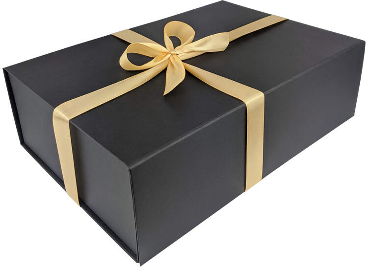 Exkluzív megjelenésű és prémium minőségű ajándékdoboz ajándékcsomagok készítéséhez és termékek csomagolásához. Figyelem! A képen látható arany színű masni csupán dekoráció és a doboz vételára nem tartalmazza a szalag árát. Ajándékdoboz jellemzői:Belső mérete: 33x22x10 cm Magas minőségű, karton anyagból készült doboz (1200 g/m2). Különleges mágneses záródás az ajándékdoboz elülső lapjába rejtve. Az egyszerű összeszerelést és pontos összeillesztés öntapadós sarkak biztosítják. Elegáns matt fekete színű, kívül-belül. Környezettudatos anyaghasználat: 100%25-ban újrahasznosított anyagból készült és 100%25-ban újrahasznosítható. Ajándékdoboz felhasználása:Exkluzív ajándékcsomagok készítéséhez. Az ajándékdoboz méretéből adódóan kiváló borok, pezsgők és más alkoholos italok csomagolásához, illetve további kiegészítők is férnek mellé. Prémium termékek ajándékcsomagolásához. Akár ruházati termékek, cipők átadáshoz, lakásdekorációs termékek csomagolásához vagy egyéb nagyobb méretű termékekhez. Kemény anyaga és térkitöltő használata esetén biztosítja, hogy a termékek biztonságban és páratlan külsővel érkezzenek meg a vásárlókhoz. Praktikus és letisztult megjelenésű tároló dobozok. Nemcsak otthoni rendszerezéshez, hanem akár üzletek vagy irodák lakberendezési kiegészítőjeként is kiváló választás a nagyméretű ajándékdoboz. ÉlménycsomagolásA mágneses ajándékdoboz igazi élményt nyújt a csomagolás során is. Ajándékdoboz összeszereléseLapra szerelt állapotban szállítjuk, aminek köszönhetően kisebb a szállítási díj mértéke. Lapra szerelt állapotban kis helyen is elférnek a prémium minőségű dobozok, így azokat elég csak közvetlenül a felhasználás előtt összeszerelni. Az ajándékdoboz néhány mozdulattal összeszerelhető: a ragasztós sarkakról kell eltávolítani a papírt, majd kihajtani az oldal lapokat és a ragasztó érintkezésénél alaposan összenyomni azokat. Ajándékcsomagok készítésénél különböző térkitöltőket használva, nemcsak igazán mutatós csomagokat kapunk, hanem szállítás során sem kell aggódnunk, hogy megsérülnek. A mágneses záraknak köszönhetően könnyen összecsukható az ajándékdoboz, melyet aztán még masnival is díszíthetünk. Egyedi díszdobozA mágneses ajándékdobozok egyik kiemelkedő tulajdonsága, hogy számos módon személyre szabhatóak, így támogatva a felhasználási célt. A külső megjelenésében hangsúlyt kaphatnak a szalagok, masnik, ugyanakkor szerepelhet rajta céges logó, köszöntő szöveg és más branding elemek is. Ez utóbbiak elkészítésére számos lehetőség köztük a fóliázás, szitanyomás és nyomtatások is a vásárlók rendelkezésére állnak. Amennyiben személyre szabott díszdobozok felől érdeklődik, kérjük keresse ügyfélszolgálatunkat!A díszdobozok belső felülete és tere is megannyi lehetőséget nyújt elképzeléseink megvalósítására. Az ajándékdoboz belső fedele kiváló kommunikációs lehetőség üzenetek elhelyezésére, melyre a fenti megoldások szintén alkalmazhatóak. Emellett pedig a belső kialakítást is termékre szabottan lehet elkészíteni. Ez utóbbihoz a legegyszerűbb és egyik legmutatósabb megoldást a kreppelt térkitöltő papír jelenti, ami rengeteg színvariációban elérhető és könnyen alkalmazható különféle ajándékcsomagok készítéséhez.