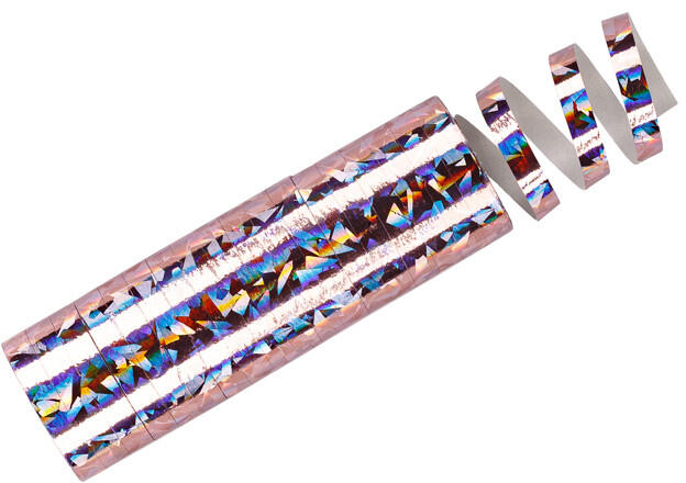 Holografikus szalagok világos rózsaszín színben, hossza kb. 3,8 méter. (1 db / 18 db. )