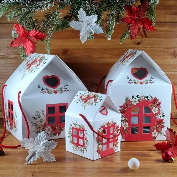 Karácsonyi Házikó - Mikulás virágos - 20 x 20 x 30 cm