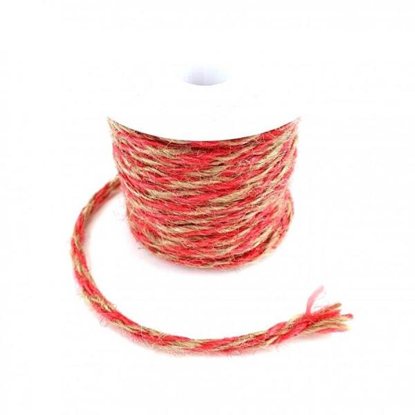Kétszinű jutazsinór - piros-natúr. Hossza: 3 m