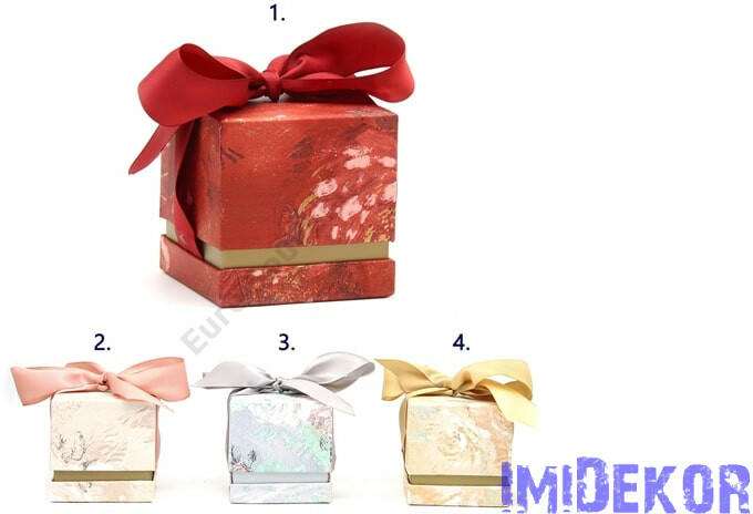 Márvány mintás papír ajándékdoboz kocka 10x10 cm - Piros