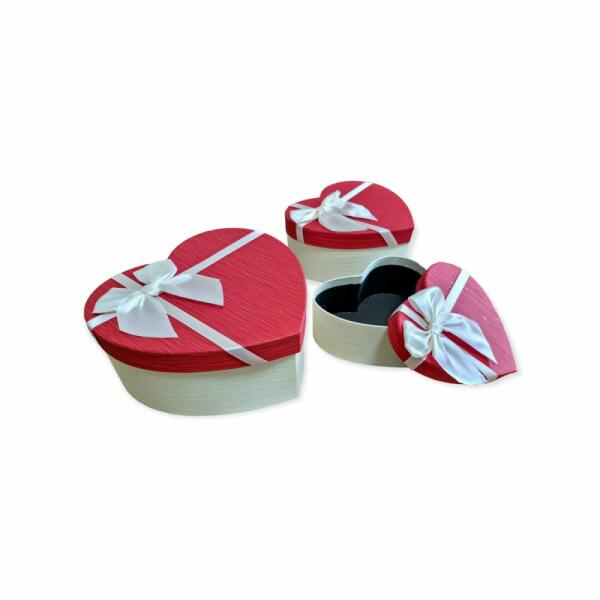 Szív formájú papír ajándékdoboz - díszdoboz szatán masnival. Egy esztétikus, praktikus, szemet gyönyörködtető ajándék doboz igényesebbé teszi az ajándékozás élményét. Ajándék doboz felhasználhatósága: Ajándék dobozokat a legkülönfélébb ajándéktárgyak csomagolásához használhatjuk. A dobozok megfelelőek italok csomagolásához, ruhanemű, ékszerek, illatszerek, és gyermekjátékok, valamint vegyes összetételű ajándék kosarak összeállításához is. Jellemzői: Anyaga: papír - karton + szatén szalag Forma: szív Szín: piros - krém