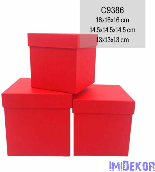 Papírdoboz 3db/szett kocka 16-14, 5-13cm - Piros