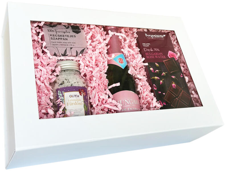 Exkluzív megjelenésű és prémium minőségű ajándékdoboz közepes ajándékcsomagok készítéséhez, átlátszó ablakkal a tetején. Ajándékdoboz jellemzői:Belső mérete: 33x22x10 cmMagas minőségű, karton anyagból készült doboz (1200 g/m2). Különleges mágneses záródás az ajándékdoboz elülső lapjába rejtve. Az egyszerű összeszerelést és pontos összeillesztés beépített tépzárak biztosítják. Elegáns fehér színű, kívül-belül. Környezettudatos anyaghasználat: újrahasznosított papírból anyagból készült. Ajándékdoboz felhasználása:Exkluzív ajándékcsomagok készítéséhez. Az ajándékdoboz méretéből adódóan kiváló közepes méretű, 3-4 termékes ajándékcsomagok készítéséhez. Például mini pezsgős ajándékcsomag, kozmetikai kiegészítők. Prémium termékek ajándékcsomagolásához. Akár ruházati termékek (pl. sálak), lakásdekorációs termékek (pl. bögrék) csomagolásához vagy egyéb kisebb méretű termékekhez. Kemény anyaga és térkitöltő használata esetén biztosítja, hogy a termékek biztonságban és páratlan külsővel érkezzenek meg a vásárlókhoz. Praktikus és letisztult megjelenésű tároló dobozok. Nemcsak otthoni rendszerezéshez, hanem akár üzletek vagy irodák lakberendezési kiegészítőjeként is kiváló választás a közepes méretű ajándékdoboz. Élménycsomagolás A mágneses ajándékdoboz igazi élményt nyújt a csomagolás során is. Ajándékdoboz összeszereléseLapra szerelt állapotban szállítjuk, aminek köszönhetően kisebb a szállítási díj mértéke . Lapra szerelt állapotban kis helyen is elférnek a prémium minőségű dobozok, így azokat elég csak közvetlenül a felhasználás előtt összeszerelni. Az ajándékdoboz néhány mozdulattal összeszerelhető: összehajtva a dobozt, beépített tépőzárak segítségével rögzíthető az ajándékdoboz végleges formája. Ajándékcsomagok készítésénél különböző térkitöltőket használva, nemcsak igazán mutatós csomagokat kapunk, hanem szállítás során sem kell aggódnunk, hogy megsérülnek. A mágneses záraknak köszönhetően könnyen összecsukható az ajándékdoboz, melyet aztán még masnival is díszíthetünk. Mutatós díszdoboz Az ablakos kialakításnak köszönhetően rendkívül látványos ajándékcsomag készíthető ebből a díszdobozból. A különféle térkitöltők használatával kiemelhetjük az ajándékcsomagok tartalmát, színessé tehetjük azok megjelenését.