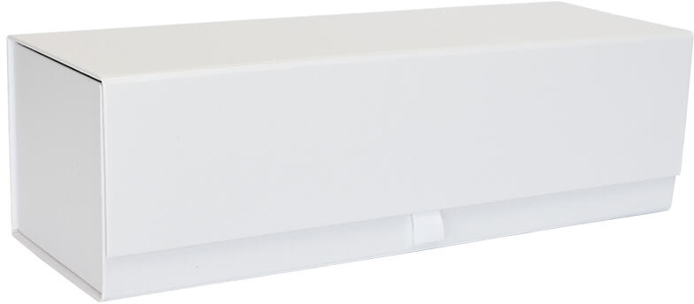 Exkluzív megjelenésű és prémium minőségű  ajándékdoboz borokhoz. (A képen látható bor nem az ajánlat része!) Bor díszdoboz jellemzői:Belső mérete: 33x10x10 cmMagas minőségű, karton anyagból készült doboz (1500 g/m2). Különleges mágneses záródás az ajándékdoboz elülső lapjába rejtve. Az egyszerű összeszerelést és pontos összeillesztés a beépített tépőzárak biztosítják. Elegáns hófehér színű kívül- belül Környezettudatos anyaghasználat: 100%-ban újrahasznosított anyagból készült és 100%-ban újrahasznosítható. Ajándékdoboz felhasználása:Borok díszcsomagolásához ajánlott.   Elegáns külső megjelenése és hófehér színe kiemeli a palackot és a bor színét is. Tökéletes választás esküvői ajándékként is. Élménycsomagolás A mágneses ajándékdoboz igazi élményt nyújt a csomagolás során is. Ajándékdoboz összeszereléseLapra szerelt állapotban szállítjuk, aminek köszönhetően  kisebb a szállítási díj mértéke . Lapra szerelt állapotban  kis helyen is elférnek  a prémium minőségű dobozok, így azokat elég csak közvetlenül a felhasználás előtt összeszerelni. Az ajándékdoboz néhány mozdulattal összeszerelhető: kihajtogatjuk az két hosszanti oldallapot a selyem szalagok segítségével és az ezek belső oldal található tépőzárakat összenyomjuk.  A mágneses záraknak köszönhetően könnyen összecsukható az ajándékdoboz, melyet aztán még masnival is díszíthetünk. A tépőzáraknak köszönhetően a használatot követően ismét összehajtható a doboz. Egyedi díszdoboz A mágneses ajándékdobozok egyik kiemelkedő tulajdonsága, hogy számos módon személyre szabhatóak, így támogatva a felhasználási célt.   A külső megjelenésében hangsúlyt kaphatnak a szalagok, masnik, ugyanakkor szerepelhet rajta céges logó, köszöntő szöveg és más branding elemek is.  Ez utóbbiak elkészítésére számos lehetőség köztük a fóliázás, szitanyomás és nyomtatások is a vásárlók rendelkezésére állnak. Amennyiben személyre szabott díszdobozok felől érdeklődik, kérjük keresse ügyfélszolgálatunkat!A díszdobozok belső felülete és tere is megannyi lehetőséget nyújt elképzeléseink megvalósítására.   Az ajándékdoboz belső fedele kiváló kommunikációs lehetőség üzenetek elhelyezésére,  melyre a fenti megoldások szintén alkalmazhatóak. Emellett pedig a belső kialakítást is termékre szabottan lehet elkészíteni.  Ez utóbbihoz a legegyszerűbb és egyik legmutatósabb megoldást a kreppelt térkitöltő papír jelenti, ami rengeteg színvariációban elérhető és könnyen alkalmazható különféle ajándékcsomagok készítéséhez.