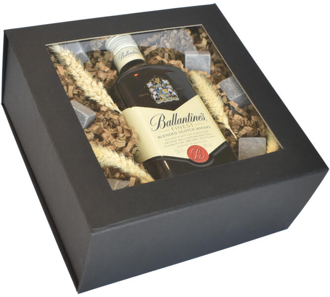 Prémium ajándékdoboz Fekete ablakos díszdoboz | 22 x 22 x 10 cm