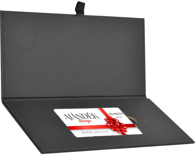 Exkluzív megjelenésű és prémium minőségű fekete kártyatartó boríték. Kártyatartó jellemzői:Mérete: 19x9 cmMagas minőségű, karton anyagból készült boríték (1200 g/m2). Különleges mágneses záródás a boríték lapjába rejtve. Összeszerelést nem igényel, kialakított kártyatartó résszel rendelkezikElegáns, fekete színű, kívül-belül. Környezettudatos anyaghasználat: 100%-ban újrahasznosított anyagból készült és 100%-ban újrahasznosítható. Kártyatartó felhasználása:Exkluzív ajándékkártyák átadásához. A boríték megjelenése tökéletesen illik az ünnepi alkalmakhoz, így ajándékkártyák és utalványok átadásához nagyszerű választás, legyen szó családi alkalomról vagy céges rendezvényről. Belépőkártyák részére. Cégek számára ajánljuk beléptető kártyák, "welcome on board" jellegű üdvözlőkártyák díszcsomagolásaként. Élménycsomagolás A mágneses kártyatartó boríték igazi élményt nyújt a csomagolás során is. Egyszerűen csak helyezzük bele a kártyát és igény szerint díszítsük külső oldallát masnival, szalaggal vagy egyedi, céges logóval. A mágneses záraknak köszönhetően garantált, hogy a kártya nem esik ki helyéről. Egyedi díszdoboz A mágneses ajándékdobozok egyik kiemelkedő tulajdonsága, hogy számos módon személyre szabhatóak, így támogatva a felhasználási célt. A külső megjelenésében hangsúlyt kaphatnak a szalagok, masnik, ugyanakkor szerepelhet rajta céges logó, köszöntő szöveg és más branding elemek is. Ez utóbbiak elkészítésére számos lehetőség köztük a fóliázás, szitanyomás és nyomtatások is a vásárlók rendelkezésére állnak. Amennyiben személyre szabott díszdobozok felől érdeklődik, kérjük keresse ügyfélszolgálatunkat!A díszdobozok belső felülete és tere is megannyi lehetőséget nyújt elképzeléseink megvalósítására. Az ajándékdoboz belső fedele kiváló kommunikációs lehetőség üzenetek elhelyezésére, melyre a fenti megoldások szintén alkalmazhatóak. Emellett pedig a belső kialakítást is termékre szabottan lehet elkészíteni. Ez utóbbihoz a legegyszerűbb és egyik legmutatósabb megoldást a kreppelt térkitöltő papír jelenti, ami rengeteg színvariációban elérhető és könnyen alkalmazható különféle ajándékcsomagok készítéséhez.