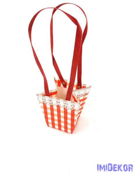 Virágtáska csipkés kocka kicsi trapéz - Piros